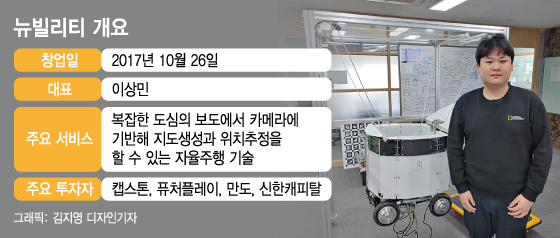 그런 그가 대학 창업동아리를 운영하던 중 윤민창의투자재단으로부터 5000만원의 씨드머니(Seed Money·종잣돈)를 투자받아 2017년 세운 회사가 뉴빌리티다. 현재 핵심사업은 비주얼 슬램 기술 가운데 하나인 ‘카메라 기반 자율주행 소프트웨어’(SW)를 실외 자율주행로봇에 적용하는 연구다. 관련해 등록·출원한 특허만 20여개 가량 보유하고 있다.