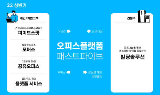김대일 패스트파이브 대표는 "패스트파이브는 더 이상 공유오피스 스타트업이 아니다"며 "공간을 매개로 공급자와 수요자들을 연결하고 이를 통해 확보한 멤버십에 다양한 서비스를 추가로 제공하는 오피스 플랫폼 기업으로 진화하고 있다"고 했다.