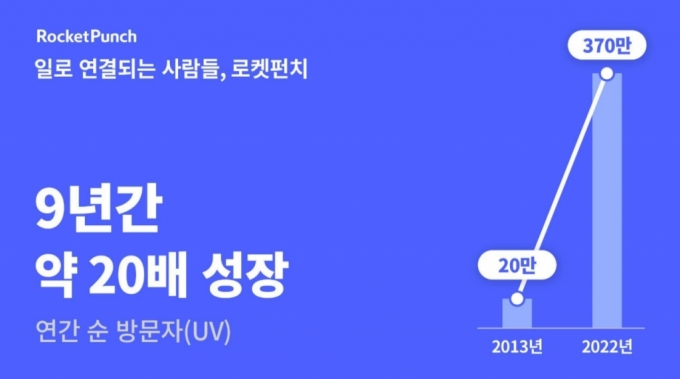 커리어 네트워크 플랫폼 '로켓펀치'의 연간 순방문자수가 2013년 1월 출시 이후 9년간 20배 가까이 성장한 것으로 나타났다.