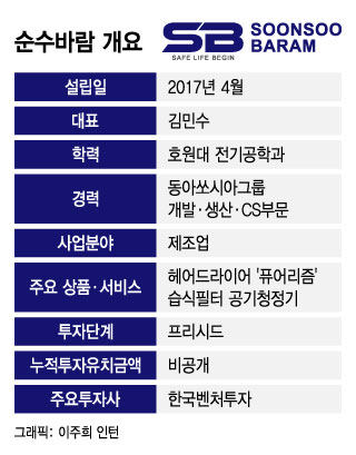 2017년 4월 설립된 순수바람은 이듬해 전자파, 미세먼지, 라돈 3가지 유해요소를 잡은 드라이기 '퓨어리즘'을 출시했다.