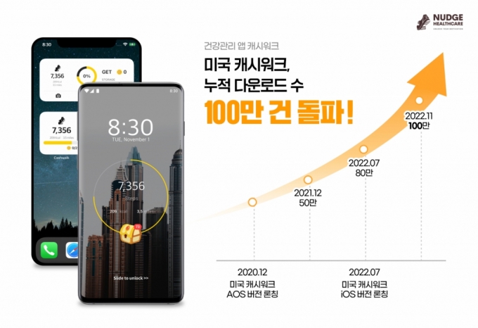 걸음 수에 따라 보상을 주는 시스템을 기반으로 한 건강관리 앱 '캐시워크'가 미국 진출 2년여 만에 누적 가입자 수 100만명을 돌파했다.