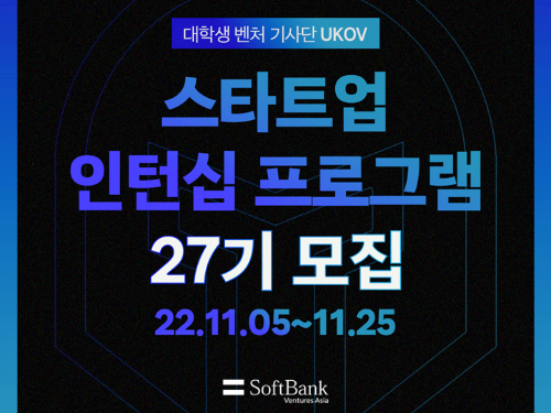 일본 소프트뱅크그룹 소속 벤처캐피탈(VC)인 소프트뱅크벤처스가 포트폴리오 스타트업 인턴십 프로그램인 '대학생벤처기사단(UKOV·유코브)' 27기를 모집한다고 4일 밝혔다.