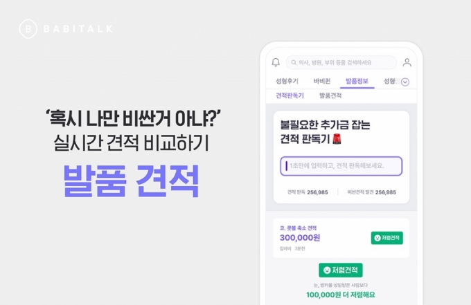 미용의료 정보 앱 바비톡이 시·수술의 견적을 비교하고 실제 상담 후기를 공유할 수 있는 '발품정보' 서비스를 선보인다고 18일 밝혔다.