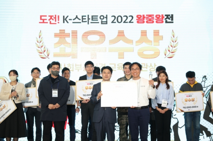 '도전! K-스타트업 2022'은 중소벤처기업부를 비롯해 11개 정부부처가 협업해 운영하는 창업경진대회다. 각 부처가 소관 분야별 예선리그를 운영하고, 통과기업을 대상으로 중기부가 통합본선·왕중왕전을 진행한다. 이번 대회에는 5420개 팀이 참가했다.