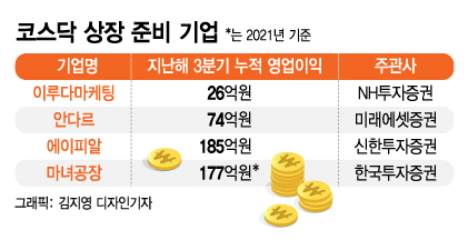 스트리트 패션 브랜드 널디와 화장품 메디큐브를 영위하는 에이피알 비상장 (198,000원 0.00%)도 신한투자증권을 기업공개(IPO) 대표 주관사로 선정하고 올 3분기 상장을 목표로 하고 있다. 에이피알의 지난해 3분기 기준 누적 매출과 영업이익은 2695억원, 185억원으로 이미 지난해 실적을 뛰어넘었다. 자연주의 화장품 기업 마녀공장은 지난해 말 한국거래소에 코스닥시장 상장예비심사를 신청했다. 마녀공장의 2021년 매출액은 626억원, 영업이익은 177억원이다.