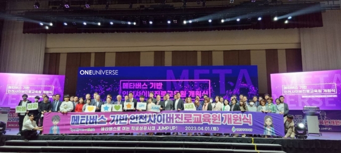 메타버스 전문 개발사 원유니버스가 인천시 교육청과 함께 개발한 메타버스 진로교육 플랫폼을 기반으로 인천 사이버 진로 교육원 개원식을 진행했다고 4일 밝혔다.