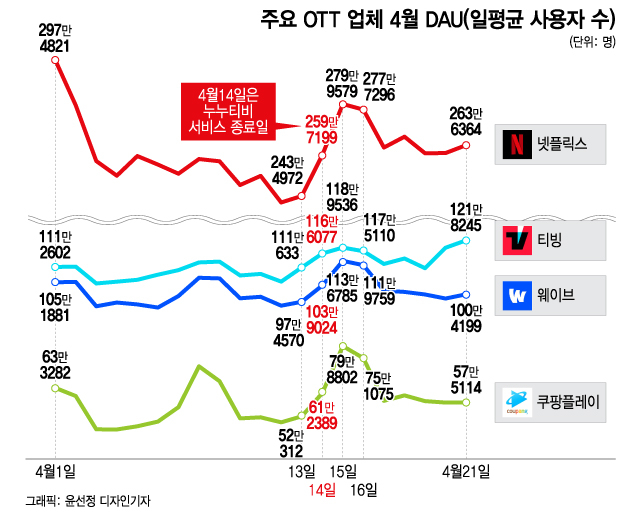14일 0시 서비스 종료...첫 주말 OTT DAU 급증