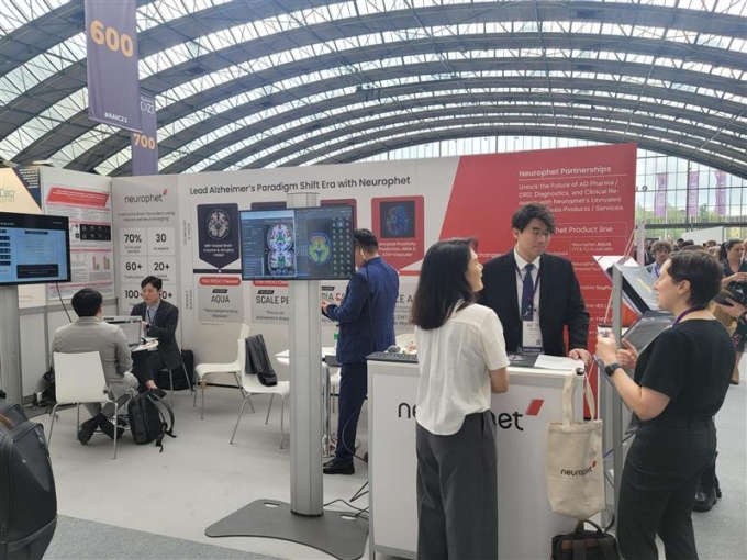 이번 컨퍼런스에서 뉴로핏은 부스 전시를 통해 뇌신경 퇴화 영상 분석 소프트웨어 '뉴로핏 아쿠아(Neurophet AQUA)'와 PET 영상 자동 분석 소프트웨어 '뉴로핏 스케일 펫(Neurophet SCALE PET)'을 소개했다. 특히 알츠하이머병 신약 임상 및 처방 분야에서 활용 가능한 뇌영상 분석 최신 기술을 선보였다.