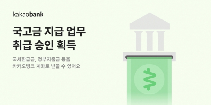 "더 낸 세금 카뱅 계좌로 돌려받는다"…카뱅, 국고금 지급 업무 취급
