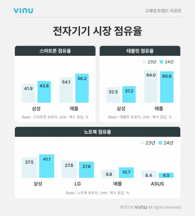 비누랩스 측은 "Z세대는 전자기기를 구매할 때 기존에 사용하던 브랜드나 대중적으로 인기 있는 제품을 선택하는 경향이 높다"며 "시장 점유율을 높이기 위해서는 스마트폰을 중심으로, Z세대의 충성고객을 확보하는 것이 중요한 전략이 될 것"이라고 설명했다.