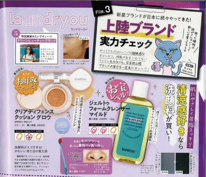 LDK는 제품 구매를 통한 실 사용 후기로 공신력 있는 채널로 평가 받는다. 일본에 진출한지 1년밖에 되지 않은 한국 뷰티 브랜드가 라이징 브랜드로 선정되는 것은 주목할 부분이라고 회사 측은 설명했다. LDK 신상 브랜드 페이지에는 런드리유 대표 상품인 글로우 쿠션, 페이스 가글 클렌저, 모공 브러쉬가 소개됐다.