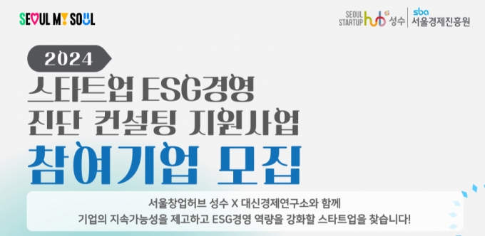 서울경제진흥원(SBA) 서울창업허브 성수는 스타트업 ESG(환경·사회·지배구조) 경영 진단 컨설팅 지원사업에 참여할 기업을 모집한다고 23일 밝혔다.