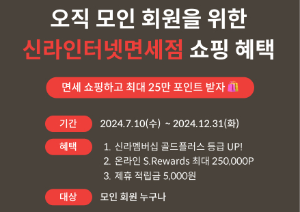 프로모션은 12월31일까지 진행된다. 이 기간 동안 모인과 신라인터넷면세점 고객이라면 누구나 혜택을 이용할 수 있다.
