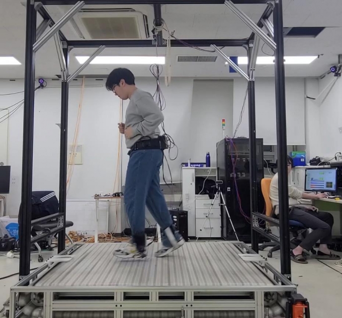 /사진=GIST 윤정원 교수팀360도 트레드밀은 미육군연구소(ARL)가 2000년대초 최초로 개발해 2010년대에 상용화한 차세대 보행 인터페이스 장치다. 보행 의도(속도·방향)를 실시간으로 파악해 사용자의 위치를 기준 위치에 계속 유지할 수 있도록 한다.