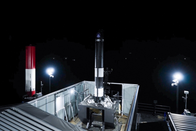해양발사플랫폼에서 최종 리허설을 앞둔 페리지 준궤도 시험발사체 '블루웨일 0.4'의 모습 /사진=페리지에어로스페이스