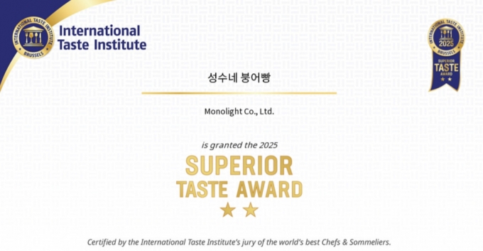 모노라이트는 자사의 성수네붕어빵이 벨기에에서 개최된 '2025 국제식음료품평회'에서 '국제 우수 미각상' 2스타에 선정됐다고 9일 밝혔다. 붕어빵이 국제 우수 미각상을 수상한 건 이번이 처음이다.