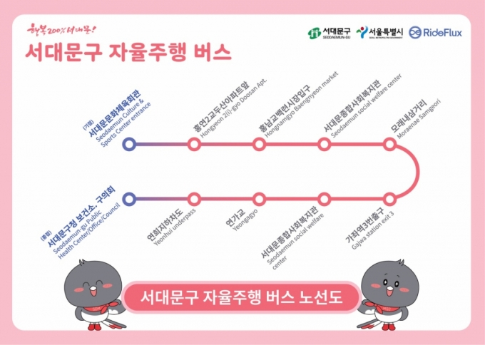 버스는 일반 마을버스와 동일하게 정해진 정류소에서 승하차하는 고정노선형으로 운영된다. 서대문구청에서 경의중앙선 가좌역까지 약 5.9km 구간을 오가며 서대문문화체육회관, 백련시장, 가재울뉴타운 등 생활 밀착형 거점을 지난다.