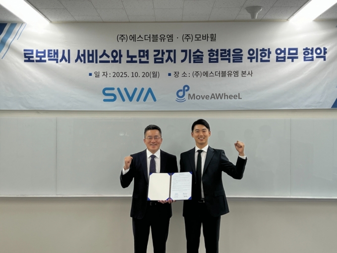 인공지능사물인터넷(AIoT) 기반 도로안전 플랫폼 전문기업 모바휠은 자율주행 모빌리티 전문기업 에스더블유엠(SWM)과 로보택시 서비스, 노면 감지 기술 협력 등을 위한 업무협약을 체결했다고 21일 밝혔다.