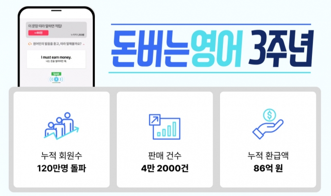 에듀테크 기업 위버스브레인이 보상을 통한 동기부여 기반 영어회화 서비스 '돈버는영어'의 누적 회원 수 120만명을 확보했다고 13일 밝혔다. 서비스 출시 3년 만에 달성한 성과다.