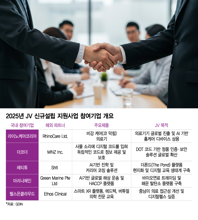 실제 성과도 나오고 있다. 경북 구미의 의료기기 기업 라이노케어코리아는 코막힘 완화기기 '라이노케어'를 기반으로 글로벌 시장에 도전하며 이스라엘 의료기기 전문기업 리노케어(RhinoCare)와 JV 설립을 결정했다. 양사는 연내 싱가포르에 합작법인을 세워 라이노케어코리아는 기술·제조·브랜드 관리를, 리노케어는 유통·임상·마케팅을 맡는 방식으로 역할을 분담할 계획이다.