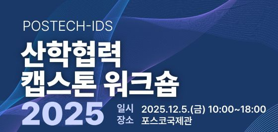 포스텍(옛 포항공대) 융합대학원 산업데이터사이언스전공(IDS)이 내달 5일 포스코국제관에서 'POSTECH-IDS 산학협력 캡스톤 워크숍 2025'를 개최한다고 27일 밝혔다. 이 행사에는 산업데이터사이언스 학생들이 한 학기 동안 수행한 캡스톤 프로젝트와 연구 성과를 공개한다.