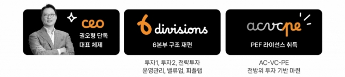 퓨처플레이는 올해 권오형 단독 대표 체제로 전환하고 △투자1본부 △투자2본부 △전략투자본부 △운영관리본부 △밸류업본부 △피플랩 등 전사 구조를 재편해 전주기 지원 체계를 강화했다.