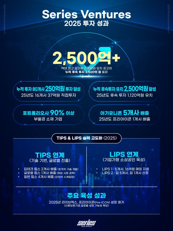 이 같은 투자·육성 전략은 가시적인 성과로 이어졌다. 2025년에는 포트폴리오 기업 '라이브엑스'가 신용보증기금의 프리아이콘(Pre-ICON) 기업으로 선정되며 스케일업 잠재력을 공식적으로 인정받았다. 이를 통해 시리즈벤처스는 누적 5개사의 아기유니콘을 배출한 데 이어, 글로벌 선도 기업으로 성장 가능한 프리아이콘 기업까지 배출하며 지역 스타트업 생태계의 핵심 가교 역할을 강화했다.