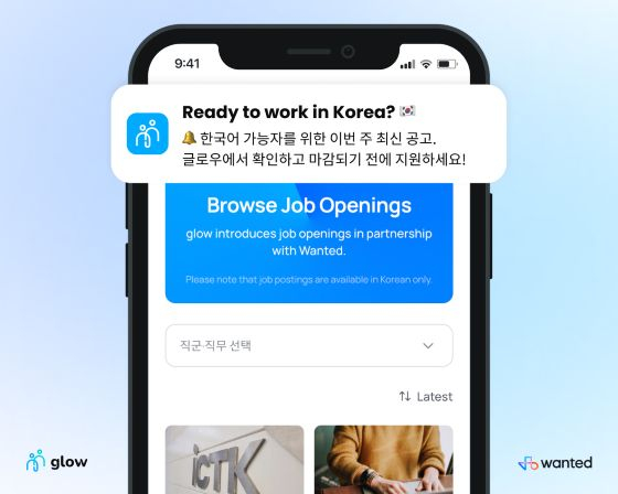 글로우 채용에는 원티드랩이 보유한 검증된 채용 공고가 API(응용프로그램 인터페이스) 방식으로 연동된다. 개발, 기획, 데이터 등 전문성이 요구되는 IT 직군 중심의 공고가 글로우 플랫폼 환경에 맞춰 제공되며, 외국인 구직자들은 복잡한 검색 과정 없이 엄선된 채용 정보를 한눈에 확인할 수 있다.