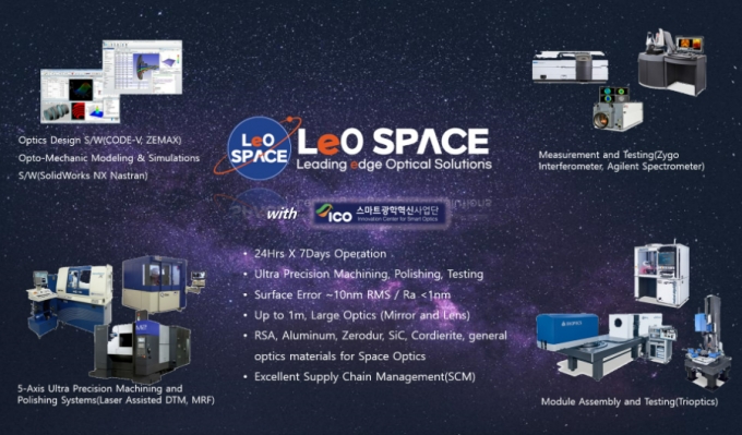 2021년 10월 설립된 레오스페이스는 소형위성용 고해상도 광학 탑재체와 위성간·지상간 레이저 광통신 기술(LCT)을 핵심 역량으로 보유했다. 우주 광학기술 국산화를 목표로 저궤도 위성용 리모트 센싱 탑재체와 자유공간 광통신 (FSOC) 기술 개발에 주력하고 있다.