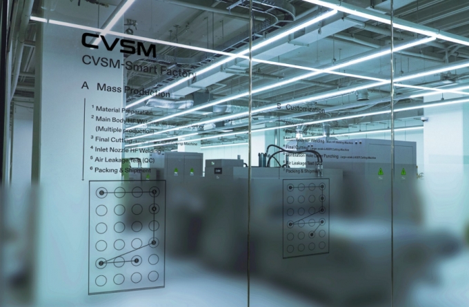 약 447㎡(약 135평) 규모로 조성된 스마트팩토리는 정밀 접합 및 재단 공정 전용 설비에 커버써먼의 에어테크 기술 노하우를 반영한 '맞춤형 디지털 전환(DX) 시스템'을 적용했다.