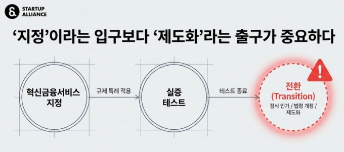 스타트업얼라이언스는 혁신금융서비스의 또 다른 문제는 성과를 판단하는 지표가 '지정'과 '출시'에만 머무르고 있다는 점을 지적했다. 얼마나 많이 지정했는지가 아니라 실증을 거친 혁신 서비스가 지속 가능한 사업으로서 시장에 안착했는지를 평가해야 한다는 얘기다.
