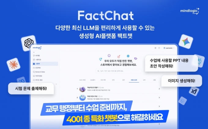 생성형 AI 플랫폼 '팩트챗'(FactChat)을 운영하는 마인드로직이 전국 주요 대학교를 비롯해 219개 초·중·고등학교 및 교육기관에 팩트챗을 공급했다고 17일 전했다.