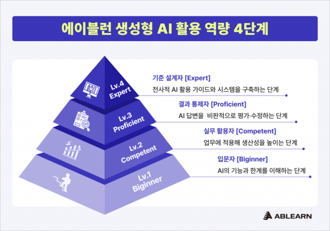 에이블런의 교육 모델은 '진단-설계-실행-검증'의 풀패키지 구조를 갖췄다. 일방적으로 강의를 판매하는 것이 아니라 조직과 개인의 현재 역량을 정밀하게 진단하는 것에서 시작한다. 이를 위해 독자적으로 개발한 'AI 리터러시 진단 도구'를 활용한다.